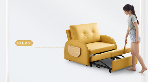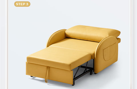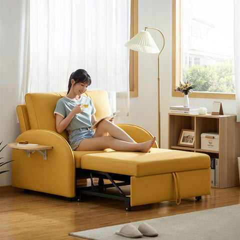 This balcoy sofa sleeper chair is designed to provide a comfortable seating and sleeping space for you . The backrest is adjustable, allowing you to find the perfect position for lounging, reading, or sleeping. There is a foldable side table in one side of armrest and a portable pocket in the other side. The pull-out mechanism that allows the chair to be converted into a comfortable bed. 2 sizes and 3 colors are available, you can easy to find one that matches your home decor.