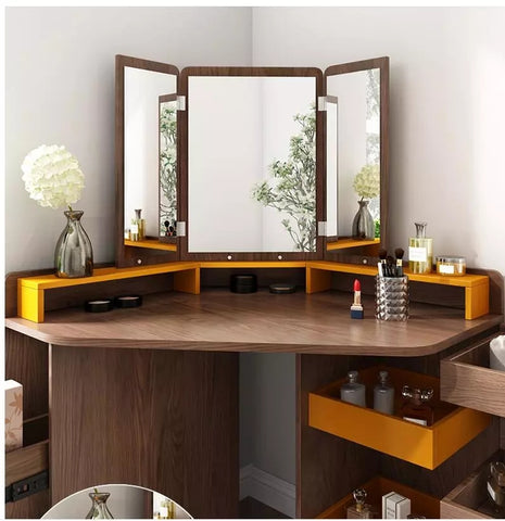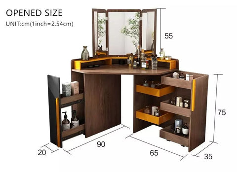 • ORGANIZER STORAGE: half-rotating multi-layer drawers and table top displaying shelves offer a place for everything and everything in its place!