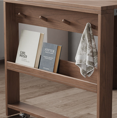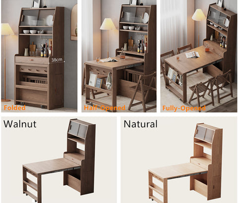 • Ample Storage Space: Shelving above the table provides plenty of storage space, and even the head of the extendable table is designed with storage space. A piece of furniture that is very suitable for small apartments.