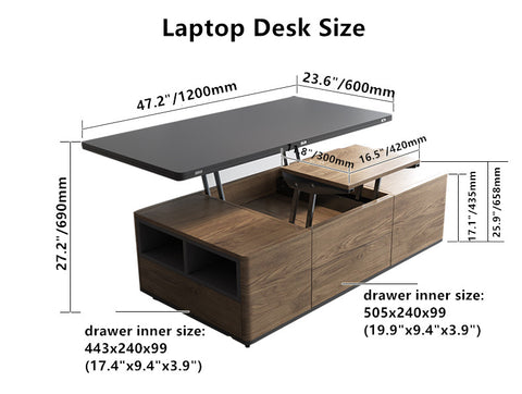 This multifunctional Coffee Table enjoys a classic appearance yet employed a modern way to bring you great convenience. it can transform into different forms to meet your needs on various occasions so you can have a casual chat with friends and have little snacks just around the living room at ease without sacrificing comfort. Also, there have three drawers for your storage. If the adjustable shelves are fully extended, this coffee table can be a writing table or dining table, believing this coffee table can amaze you in your daily life.