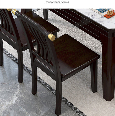 • 7 piece dinette Set Includes an 2 in 1 marble table top dining table and 6 dining chairs.