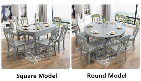 Limited time sale -2 In 1 Round Square Solid Wood Dining Table Set