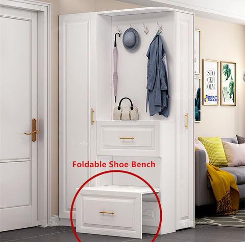 • Dimensions & Assembly - 4 sizes are available. Assembly required, this entryway hall tree with wardrobe and shoe rack is easy to put together, all parts and instructions are included in package. Made of thick engineered particle board.
