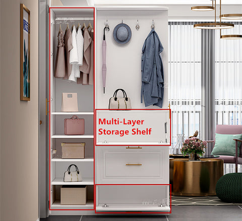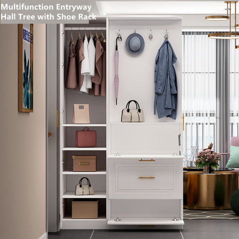 Multifunction Entryway Hall Tree with Slide Out Shoe Rack and Single Door Wardrobe