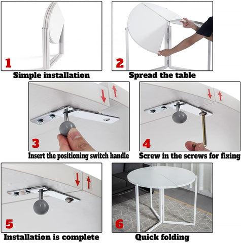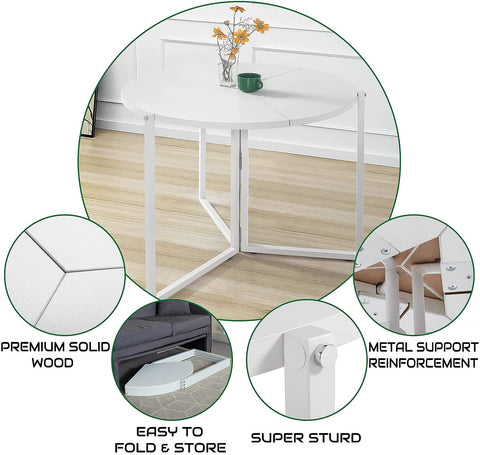 • 【 Space Saving 】The Round Folding Table is a space saver’s dream. In a few quick movements, watch this table magically unfold into a cozy table. The smooth table top surface accommodates office or dining spaces when expanded and easily folds up to take up minimal storage space in your cupboard.