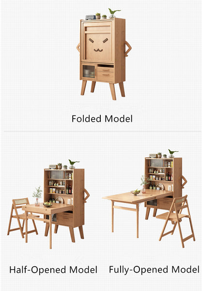 • Chairs tuck neatly in the sideboard. Three Model: Folded as sideboard, save tons of space. Half-Opened can server for 1-2, Fully Opended can server for 3-4.