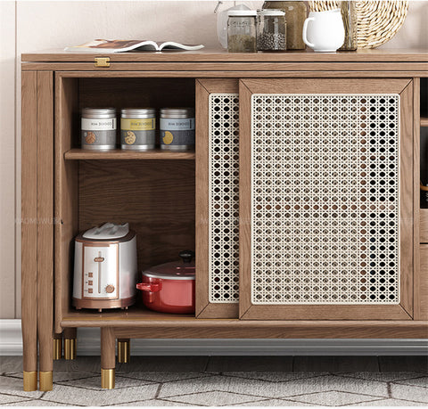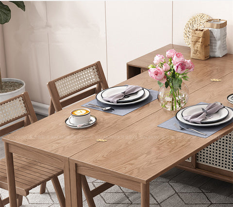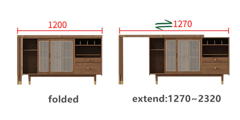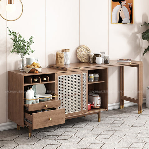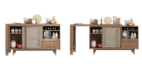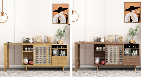 New Design Folding and Expandable Multifunction Dining Table with Side Cabinet