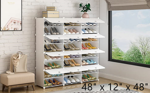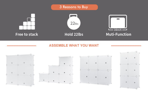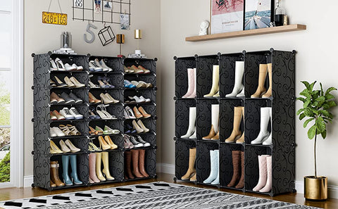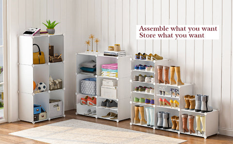 • 【CREAT DESIGN】Each cube supports up to 22 lbs. The cube can hold up to 2 pairs of adult shoes, gift shoe sticker,and waterproof, dustproof PP plastic panels are very durable to meet your long-term storage needs. It will be suitable for your cubby walk-in closet, entryway or garage, with Layer Height for boots regular heels, sneakers.