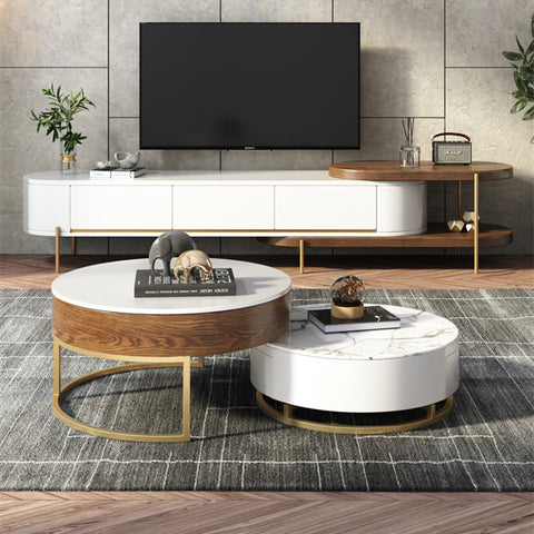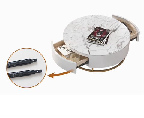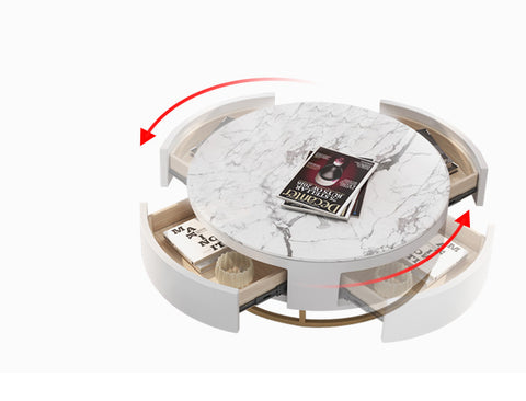 Round Coffee Table With Lift-UP Top and Double Rotating Drawers
