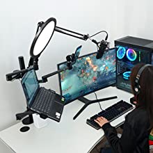- 【High integration】: It can switch freely between various recording devices, implement multi-screen operation, keep the desktop tidy, relieve shoulder and neck fatigue, and improve work efficiency.