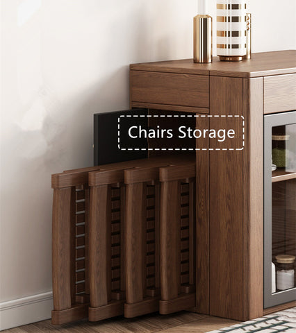 • MODERN DINING TABLE: Folded 19.70 in, with 4 extension leaves, max extension length 49.21in . The 4 extension leaves can be stored under the table. 4 folding solid wood chairs are included. Can be stored under the table ,too.