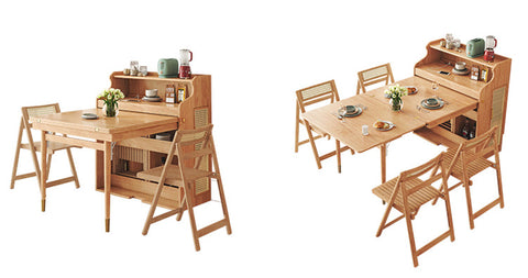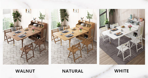 • This is a versatile and practical piece of furniture that can provide ample dining space while also taking up minimal space, making it ideal for smaller apartments or homes with limited space. The tabletop can be easily expanded according to your need, allowing for more seating and dining space.